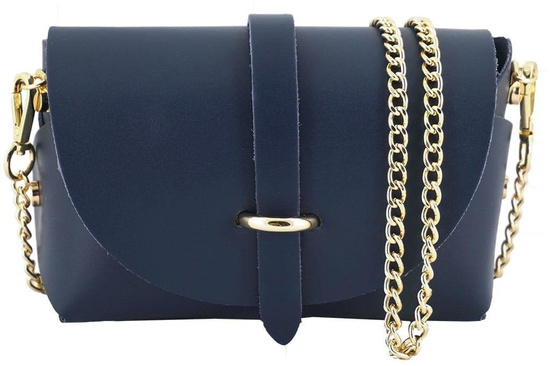 Wnętrze listonoszki: modne listonoszki wizytowe są bezszwowe, surowo wykończone, posiadają złote okucia. Zapinane są paseczkiem przechodzącym przez złotą ozdobną szlufkę. Długość łańcuszka listonoszki 120cm.