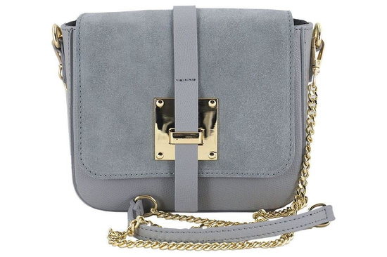 Wizytowa listonoszka na ramię - Barberini's została wyprodukowana we Włoszech, wykonana ze skóry naturalnej. Niezwykle zgrabna i elegancka listonoszka wyróżni kreacje na wyjątkowe okazje - spotkanie ze znajomymi, wyjście do kina lub teatru. Złote okucia oraz połączenie skóry licowej ze skórą zamszową nadają torebce niepowtarzalny styl i charakter. Sprawdź ofertę naszego sklepu i wybierz model idealny dla Ciebie.