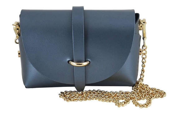 Wnętrze torebki: jednokomorowe torebki ze skóry metalizowanej są surowo wykończone. Zapinane są paseczkiem przechodzącym przez złotą ozdobną szlufkę. Długość łańcuszka: 120cm.