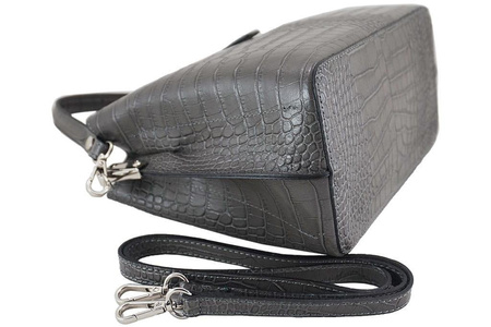 Torebka skórzana na ramię - CROCO - Szary ciemny