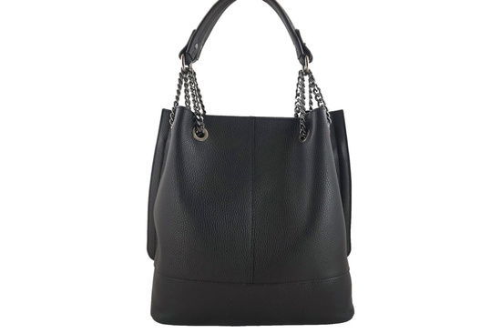 Modna torebka skórzana damska została wyprodukowana we Włoszech, wykonana ze skóry naturalnej licowej. Propozycja sklepu internetowego Barberini's w kategorii Torebki Klasyczne - modna torebka skórzana damska na wygodnej długości uchwytach wykonanych z połączenia skóry naturalnej oraz metalowych łańcuszków. Ofertę kierujemy do kobiet dbających o eleganckie stylizacje do pracy lub na spotkanie, poszukujących klasycznych dodatków codziennej garderoby.