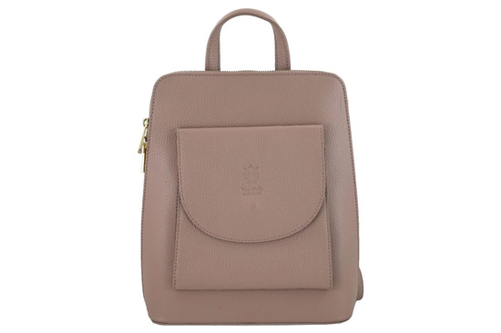 Wnętrze plecaka: jednokomorowy plecak damski skórzany wykończony jest podszewką. Komora główna plecaka przedzielona jest zasuwaną kieszenią mieszczącą np. kosmetyki. Dodatkowo wewnątrz znajduje się mniejsza zasuwana kieszonka oraz miejsce na telefon. Plecak skórzany / listonoszka - Casual 2w1 posiada złote okucia, suwak otwiera plecak na całej długości, co ułatwia swobodne dostanie się do rzeczy wewnątrz. Długi regulowany pasek (maksymalna dł. 180cm, maksymalna wys. 88cm) umożliwia noszenie na dwa sposoby - jako plecak lub listonoszka. Na zewnątrz znajdują się dwie kieszenie - z tyłu zasuwana, z przodu na zatrzask magnetyczny. Na usztywnionym spodzie znajdują się metalowe stopki chroniące przed otarciem.