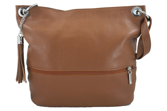 Wnętrze torebki: skórzane torebki włoskie wykończone są podszewką. Wewnątrz znajdują się dwie kieszenie - jedna zapinana na zamek oraz kieszeń na telefon. Na zewnątrz znajdują się dwie zasuwane kieszenie. Pasek torebek jest regulowany i umożliwia również noszenie na ramieniu.