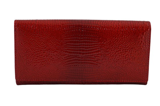 Klasyczny skórzany portfel damski CROCO - Czerwony
