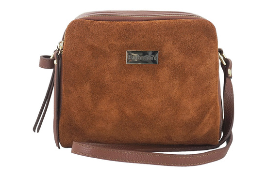 Wnętrze torebki: trzy odrębne komory wykończone są podszewką, zamykane na suwak zakończony skórzanym paseczkiem. W środkowej części, największej, znajduje się zasuwana kieszonka oraz miejsce na telefon. Torebki listonoszki skórzane posiadają regulowany pasek (maksymalna dł. 137cm, maksymalna wys. 63cm).