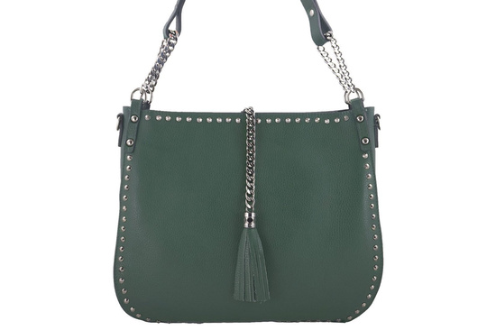 Modna torebka skórzana na ramię z nitami - Zielona ciemna