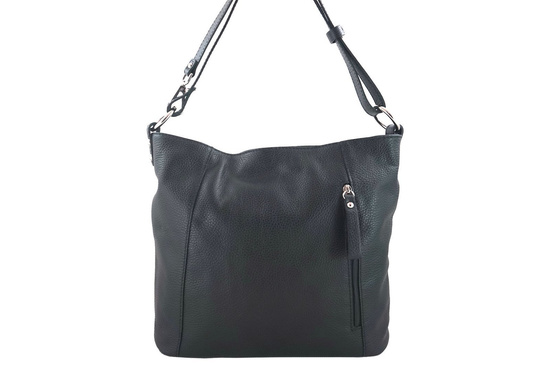 Pojemny skórzany worek na ramię - Czarny