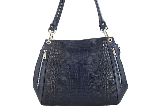 Modna duża torba na ramię skórzana - Granatowa