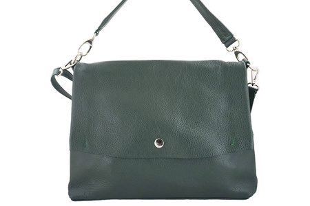Duża torebka klasyczna ze skóry naturalnej miękkiej - Zielona ciemna