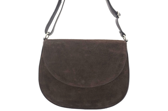 Duża torebka listonoszka zamszowa z klapką - Brązowa ciemna