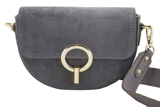 Wnętrze listonoszki: jednokomorowe wnętrze jest wykończone podszewką. Wewnątrz wyodrębniono zasuwaną kieszeń mieszczącą kosmetyki, klucze lub mały notes. Modna torebka wizytowa skórzana jest zapinana ozdobnym zapięciem, posiada złote okucia, wygony szeroki pasek bez regulacji (długość 105cm, wysokość 50cm, szerokość paska 3cm). Na zewnątrz, z tyłu, znajduje się zasuwana ozdobnie doszyta kieszeń. Łączenie skóry naturalnej licowej ze skórą naturalną zamszową wyróżnia ten model listonoszki dostępnej w kolekcji torebek skórzanych dostępnych w sklepie.
