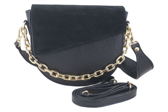 Torebka skórzana z ozdobnym łańcuszkiem - Czarna