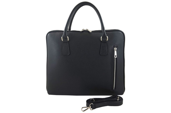 Skórzana torba na laptopa Casual - Czarna