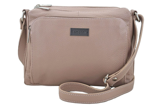 Listonoszka skórzana z kieszeniami - Różowa pudrowa