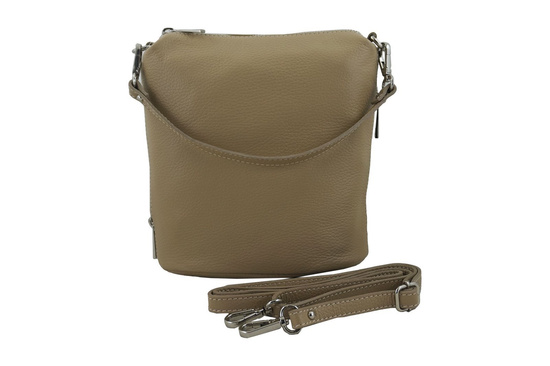 Wnętrze listonoszki: jednokomorowa mała torebka listonoszka skórzana jest wykończona podszewką. Wewnątrz wyodrębniono małą zasuwaną kieszonkę. Torebka posiada srebrne okucia, wygodny uchwyt do ręki (długość 31cm, wysokość 15cm) oraz dodatkowy pasek z regulacją (maksymalna dł. 116cm, maksymalna wys. 60cm). Na zewnątrz znajdują się poręczne boczne kieszenie zasuwane.