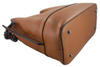 Wnętrze torebki: zamszowa komora główna torebki podzielona jest na pół dużą i pojemną zasuwaną kieszenią. Modna torebka skórzana damska jest zasuwana, posiada ciemne metalowe okucia, dwa uchwyty (skóra naturalna i łańcuszek) bez możliwości regulacji (długość 54cm, wysokość 21cm) oraz metalowe stopki na spodzie chroniące przed otarciem.