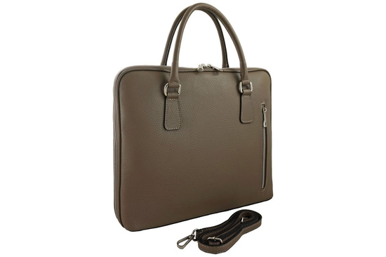 Skórzana torba na laptopa Casual - Beżowa ciemna