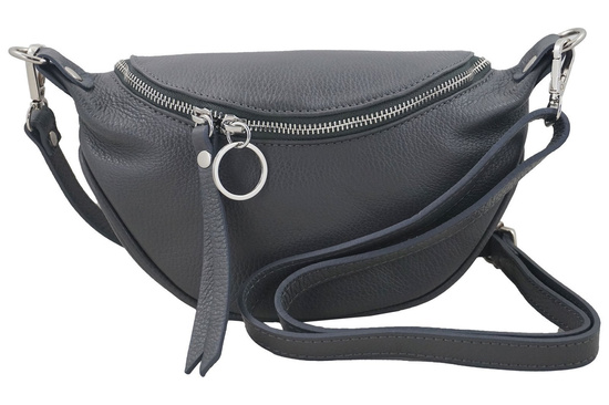 Saszetka nerka skórzana damska - Szara ciemna