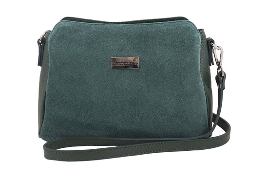 Listonoszka skórzana z zamszem - Zielona ciemna