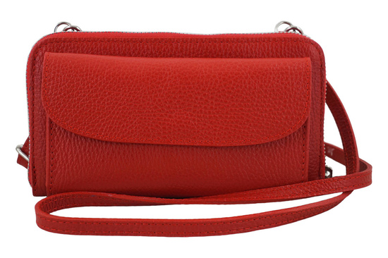 Portfel z etui na telefon ze skóry licowej czerwony jasny to również mini torebka po doczepieniu długiego i regulowanego paska. Idealna do każdej stylizacji, niezbędny dodatek codziennej garderoby. Niewielki rozmiar powoduje, iż zmieścisz etui w torebce lub możesz swobodnie nosić przewieszone przez ramię. Portfel z etui na telefon ze skóry licowej to propozycja dla kobiet poszukujących modnych akcesoriów galanterii skórzanej. Sklep internetowy oferuje wiele modeli torebek na różne okazje oraz portfeli skórzanych, a także szybką i profesjonalną obsługę Państwa zamówienia. Zapisz się do naszego newslettera i odbierz rabat -15% na pierwsze zakupy. Gwarantujemy produkty z wysokiej jakości skóry naturalnej, wykonanych z dbałością o szczegóły, z subtelnymi dodatkami oraz modelami z najnowszych kolekcji galanterii skórzanej Dla Pań i Panów.