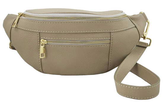 Damska torebka nerka skórzana z kieszenią beżowa została wykonana ze skóry naturalnej licowej. W kolekcji galanterii skórzanej oferujemy modne oraz klasyczne dodatki garderoby, które idealnie komponują się ze swobodnymi kreacjami stylu miejskiego. Praktyczna i wygodna damska torebka nerka skórzana z kieszenią to niezastąpiony dodatek codziennej garderoby. Idealna na spacer, spotkanie, zakupy, czy jazdę na rowerze lub rolkach. Nie krępująca ruchów. Regulowany pasek umożliwia noszenie torebki nerki wygodnie w pasie lub przewieszonej przez ramię. Wyjątkowe i gustowne torebki skórzane - listonoszki, nerki, klasyczne oraz worki dostępne w naszym sklepie wyróżniają się modnym fasonem, subtelnymi ozdobami oraz solidnym wykonaniem. Dostępna w najnowszej kolekcji damska torebka nerka skórzana z kieszenią uzupełni swobodny miejski outfit, podkreśli styl i charakter Twoich kreacji.