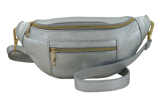 Modna torebka nerka metalizowana srebrna została wykonana ze skóry naturalnej licowej. W kolekcji galanterii skórzanej oferujemy modne oraz klasyczne dodatki garderoby, które idealnie komponują się ze swobodnymi i niezobowiązującymi stylizacjami. Modna torebka nerka metalizowana to niezastąpiony dodatek garderoby na spotkanie z przyjaciółkami. Nie krępująca ruchów - regulowany pasek umożliwia noszenie torebki nerki wygodnie w pasie lub przewieszonej przez ramię. Wyjątkowe i gustowne torebki skórzane - listonoszki, nerki, klasyczne oraz worki dostępne w naszym sklepie wyróżniają się modnym fasonem, subtelnymi ozdobami oraz solidnym wykonaniem. Dostępna w najnowszej kolekcji modna torebka nerka metalizowana w srebrnym kolorze podkreśli charakter Twoich stylizacji na wyjątkowe okazje.