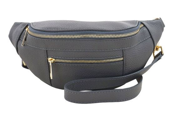 Damska torebka nerka skórzana z kieszenią szara ciemna została wykonana ze skóry naturalnej licowej. W kolekcji galanterii skórzanej oferujemy modne oraz klasyczne dodatki garderoby, które idealnie komponują się ze swobodnymi kreacjami stylu miejskiego. Praktyczna i wygodna damska torebka nerka skórzana z kieszenią to niezastąpiony dodatek codziennej garderoby. Idealna na spacer, spotkanie, zakupy, czy jazdę na rowerze lub rolkach. Nie krępująca ruchów. Regulowany pasek umożliwia noszenie torebki nerki wygodnie w pasie lub przewieszonej przez ramię. Wyjątkowe i gustowne torebki skórzane - listonoszki, nerki, klasyczne oraz worki dostępne w naszym sklepie wyróżniają się modnym fasonem, subtelnymi ozdobami oraz solidnym wykonaniem. Dostępna w najnowszej kolekcji damska torebka nerka skórzana z kieszenią uzupełni swobodny miejski outfit, podkreśli styl i charakter Twoich kreacji.