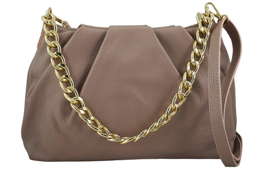 Marszczona torebka z łańcuszkiem różowa pudrowa została wykonana z naturalnej skóry licowej. Eleganckie stylizacje uzupełnią torebki dostępne w naszym sklepie - duży wybór kolorów, najnowsze trendy, ciekawe łączenie różnego rodzaju skór naturalnych oraz delikatne ozdoby. Modna marszczona torebka z łańcuszkiem, w kolorze różowym pudrowym, to idealny dodatek garderoby - dopasujesz ją do sukienek lub eleganckich spodni. Uniwersalny fason, rozmiarowo idealny aby pomieścić niezbędne rzeczy - telefon, portfel oraz drobne kosmetyki. Wyróżniający ten model złoty łańcuszek, marszczenie po obu stronach oraz wysokiej jakości skóra naturalna gwarantują iż torebka będzie idealnym uzupełnieniem stylizacji na wyjątkową okazję. Chcesz być informowana o nowej kolekcji, uzupełnieniu magazynowym lub aktualnych promocjach? Zapisz się do naszego newslettera - wraz z informacją o najnowszej kolekcji otrzymasz rabat -15% na zakupy. Skorzystaj z oferty naszego sklepu - gwarantujemy wysoką jakość produktów, solidne wykonanie oraz duży wybór modeli torebek oraz portfeli.