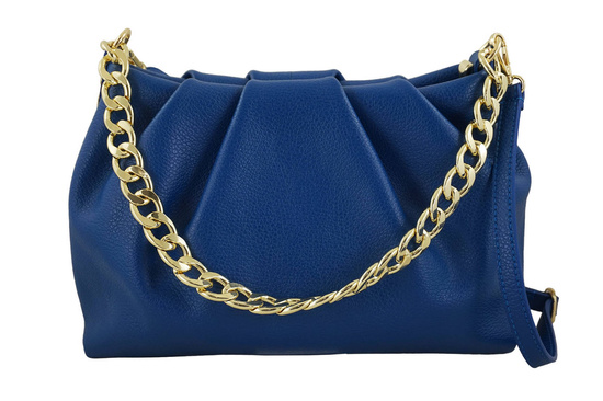 Marszczona torebka z łańcuszkiem chabrowa została wykonana z naturalnej skóry licowej. Eleganckie stylizacje uzupełnią torebki dostępne w naszym sklepie - duży wybór kolorów, najnowsze trendy, ciekawe łączenie różnego rodzaju skór naturalnych oraz delikatne ozdoby. Modna marszczona torebka z łańcuszkiem to idealny dodatek garderoby - dopasujesz ją do sukienek lub eleganckich spodni. Uniwersalny fason, rozmiarowo idealny aby pomieścić niezbędne rzeczy - telefon, portfel oraz drobne kosmetyki. Wyróżniający ten model złoty łańcuszek, marszczenie po obu stronach oraz wysokiej jakości skóra naturalna gwarantują iż torebka będzie idealnym uzupełnieniem stylizacji na wyjątkową okazję. Chcesz być informowana o nowej kolekcji, uzupełnieniu magazynowym lub aktualnych promocjach? Zapisz się do naszego newslettera - wraz z informacją o najnowszej kolekcji otrzymasz rabat -15% na zakupy. Skorzystaj z oferty naszego sklepu - gwarantujemy wysoką jakość produktów, solidne wykonanie oraz duży wybór modeli torebek oraz portfeli.