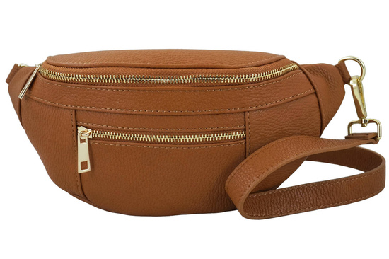 Damska torebka nerka skórzana z kieszenią brązowa jasna została wykonana ze skóry naturalnej licowej. W kolekcji galanterii skórzanej oferujemy modne oraz klasyczne dodatki garderoby, które idealnie komponują się ze swobodnymi kreacjami stylu miejskiego. Praktyczna i wygodna damska torebka nerka skórzana z kieszenią to niezastąpiony dodatek codziennej garderoby. Idealna na spacer, spotkanie, zakupy, czy jazdę na rowerze lub rolkach. Nie krępująca ruchów. Regulowany pasek umożliwia noszenie torebki nerki wygodnie w pasie lub przewieszonej przez ramię. Wyjątkowe i gustowne torebki skórzane - listonoszki, nerki, klasyczne oraz worki dostępne w naszym sklepie wyróżniają się modnym fasonem, subtelnymi ozdobami oraz solidnym wykonaniem. Dostępna w najnowszej kolekcji damska torebka nerka skórzana z kieszenią uzupełni swobodny miejski outfit, podkreśli styl i charakter Twoich kreacji.