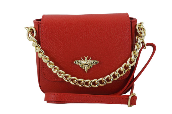 Modna torebka skórzana ze złotym łańcuszkiem - Czerwona jasna