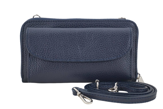 Portfel z etui na telefon ze skóry licowej - Granatowy
