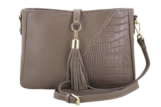 Torebka skórzana z ozdobnym frędzlem - Beżowa ciemna