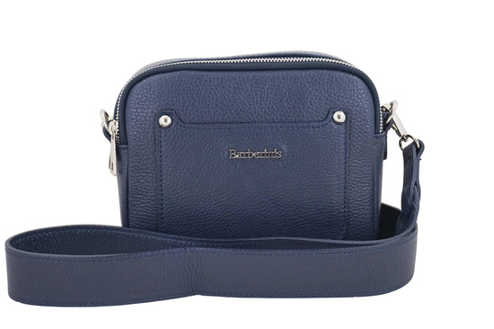 Listonoszka damska na szerokim pasku skórzana - Granatowa