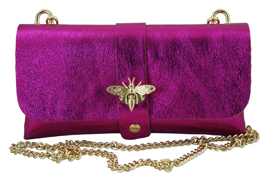 Torebki wizytowe metalizowane w kolorze fuksji zostały wykonane z naturalnej skóry licowej. Wyjątkowe stylizacje uzupełnią torebki dostępne w naszym sklepie - duży wybór kolorów, najnowsze trendy, ciekawe łączenie różnego rodzaju skór naturalnych oraz delikatne ozdoby. Dostępne w najnowszej ofercie, w kategorii LISTONOSZKI, modne torebki wizytowe metalizowane na złotym łańcuszku to idealny dodatek eleganckiej garderoby. Uniwersalny fason urozmaicony złotymi dodatkami oraz ozdobnie plecioną skórą z obu stron torebki, rozmiarowo idealny aby pomieścić niezbędne rzeczy - telefon, portfel oraz drobne kosmetyki. Nowoczesny design oraz wysokiej jakości skóra naturalna wyróżniają ten model torebki, która będzie idealnym uzupełnieniem stylizacji na spotkanie z przyjaciółmi. Chcesz być informowana o nowej kolekcji, uzupełnieniu magazynowym lub aktualnych promocjach? Zapisz się do naszego newslettera - wraz z informacją o najnowszej kolekcji otrzymasz rabat -15% na zakupy. Skorzystaj z oferty naszego sklepu - gwarantujemy wysoką jakość produktów, solidne wykonanie oraz duży wybór modeli torebek oraz portfeli.
