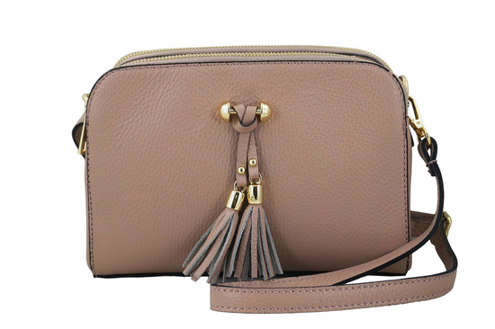 Listonoszka skórzana z kieszeniami - Różowy pudrowy