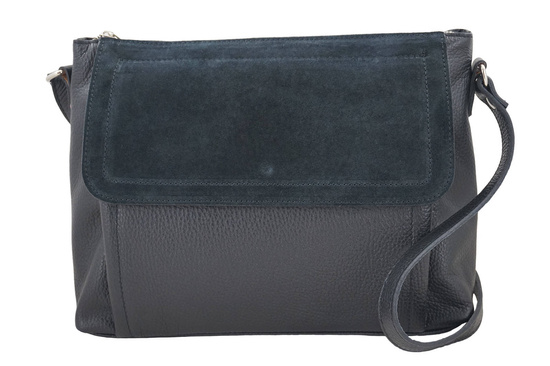 Torebka skórzana z zamszową klapką - Czarna