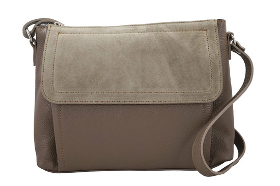 Torebka skórzana z zamszową klapką - Beżowa ciemna