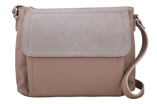 Torebka skórzana z zamszową klapką - Różowa pudrowa