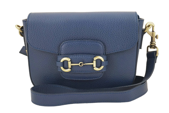 Torebka skórzana na szerokim pasku - Granatowa jasna