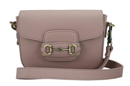 Torebka skórzana na szerokim pasku - Różowa pudrowa