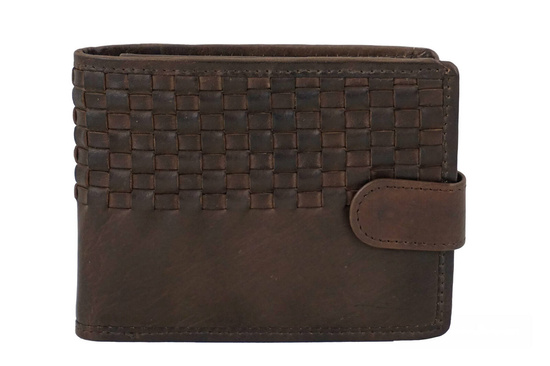 Wnętrze portfela: ekskluzywny portfel męski z zapięciem wyróżnia pleciony wzór w górnej części oraz wyjątkowo miękka skóra naturalna wysokiej jakości. Pojemny i praktyczny portfel mieści: w pierwszej części trzy przegrody na karty, kieszeń na zatrzask mieszczącą monety, wygodną kieszonkę na listę zakupów, oraz dodatkową kieszeń bez zapięcia znajdującą się pod miejscem na karty. W drugiej części: duże miejsce na dokument ze zdjęciem, cztery przegrody na karty płatnicze i dodatkowa kieszonka bez zapięcia. Wyodrębniono również dwie duże przegrody na banknoty. Ekskluzywny portfel męski z zapięciem jest dostępny w trzech klasycznych kolorach: czarny, brązowy oraz brązowy ciemny. Sprawdź szeroką ofertę portfeli wykonanych z dbałością o szczegóły, zapakowanych w ozdobne pudełka.