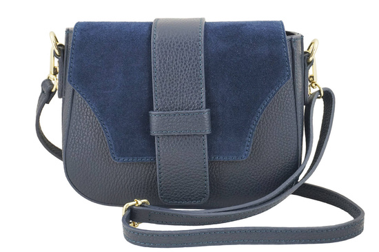 Torebka listonoszka z zamszową klapą w kolorze granatowym jest wykonana ze skóry naturalnej licowej w połączeniu ze skórą naturalną zamszową. Idealna propozycja wśród torebek na każdy dzień - klasyczna torebka urozmaicona ozdobnie wyciętą klapką, z długim regulowanym paskiem umożliwia noszenie torebki na ramieniu lub wygodnie przewieszonej przez ramię. W naszym asortymencie czekają na Ciebie skórzane torebki typu “listonoszka”, które dopasujesz zarówno do okazji, jak i Twojego stylu. Oferowane w najnowszej kolekcji torebki zaprojektowano tak, aby mieściły portfel, telefon, klucze oraz drobne kosmetyki. Torebka listonoszka z zamszową klapą to propozycja dla Pań ceniących gustowne dodatki codziennej garderoby, zwracających uwagę na jakość i estetykę wykonania produktu ze skóry naturalnej. Zachęcamy do zapoznania się ze szczegółową ofertą klasycznych torebek damskich skórzanych. Oferujemy również duży wybór portfeli ze skóry lakierowanej lub z kolorowym wnętrzem, zapakowanych w ozdobne, dopasowane pudełko.