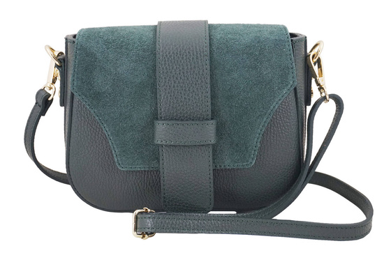 Torebka listonoszka z zamszową klapą - Zielona ciemna