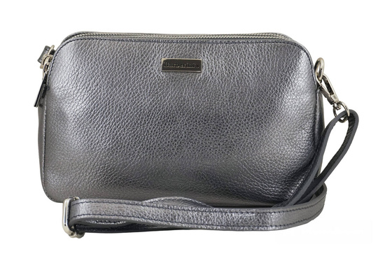 Damska torebka metalizowana w kolorze srebrnym ciemnym została wykonana ze skóry naturalnej licowej. Klasyczny fason, złote okucia oraz modna metalizowana skóra naturalna wyróżnia ten model listonoszki, która podkreśli stylizacje na wyjątkowe okazje. Dostępna w najnowszej kolekcji damska torebka metalizowana trzykomorowa będzie idealna dla osób, którym zależy na pojemnych i jednocześnie stylowych torebkach ze skóry naturalnej. O charakterze stylizacji przesądza nie tylko fason produktu, ale przede wszystkim jego kolor lub wyróżniające się wykończenie skóry naturalnej - w tym modelu jest to modna skóra metaliczna. Dzięki klasycznemu i stonowanemu wzornictwu błyszcząca torebka wyróżni Twój outfit na każdej uroczystości lub spotkaniu ze znajomymi. Zapoznaj się z najnowszą ofertą torebek skórzanych dostępnych w naszym sklepie - listonoszek, klasycznych lub wygodnych plecaków oraz portfeli. Oferujemy duży wybór produktów galanterii skórzanej Dla Niej i Dla Niego.
