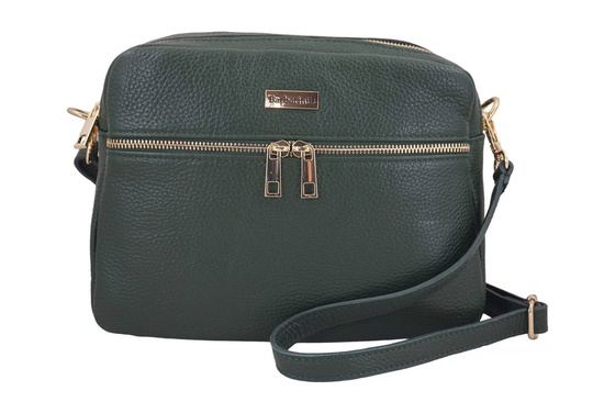 Pojemna torebka skórzana dwukomorowa w kolorze ciemnej zieleni została wykonana ze skóry naturalnej licowej. W ofercie naszego sklepu znajdziesz wiele modeli funkcjonalnych torebek listonoszek, na długim regulowanym pasku, w szerokiej palecie kolorów, z delikatnymi złotymi lub srebrnymi ozdobami. Wszystkie harmonijnie dopełnią kobiecy look, stanowiąc jego praktyczny dodatek. Klasyczny fason torebki z dużą pojemną zasuwaną kieszenią oraz złote okucia wyróżniają ten model listonoszki, która podkreśli codzienne swobodne stylizacje do pracy, na zakupy, spacer lub krótki wyjazd. Dostępna w najnowszej kolekcji, w szerokiej palecie kolorów, pojemna torebka skórzana dwukomorowa będzie idealna dla osób, którym zależy na stylowych i jednocześnie funkcjonalnych torebkach ze skóry naturalnej. Dzięki klasycznemu i stonowanemu wzornictwu dopasujesz torebkę zarówno do casualowych sukienek lub spodni dżinsowych. Zapoznaj się z najnowszą ofertą torebek skórzanych dostępnych w naszym sklepie - listonoszek, klasycznych lub wygodnych plecaków oraz portfeli. Oferujemy duży wybór produktów galanterii skórzanej Dla Niej i Dla Niego.