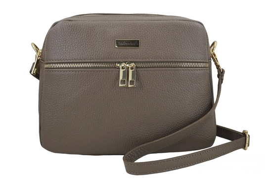 Pojemna torebka skórzana dwukomorowa w kolorze ciemnego beżu została wykonana ze skóry naturalnej licowej. W ofercie naszego sklepu znajdziesz wiele modeli funkcjonalnych torebek listonoszek, na długim regulowanym pasku, w szerokiej palecie kolorów, z delikatnymi złotymi lub srebrnymi ozdobami. Wszystkie harmonijnie dopełnią kobiecy look, stanowiąc jego praktyczny dodatek. Klasyczny fason torebki z dużą pojemną zasuwaną kieszenią oraz złote okucia wyróżniają ten model listonoszki, która podkreśli codzienne swobodne stylizacje do pracy, na zakupy, spacer lub krótki wyjazd. Dostępna w najnowszej kolekcji, w szerokiej palecie kolorów, pojemna torebka skórzana dwukomorowa będzie idealna dla osób, którym zależy na stylowych i jednocześnie funkcjonalnych torebkach ze skóry naturalnej. Dzięki klasycznemu i stonowanemu wzornictwu dopasujesz torebkę zarówno do casualowych sukienek lub spodni dżinsowych. Zapoznaj się z najnowszą ofertą torebek skórzanych dostępnych w naszym sklepie - listonoszek, klasycznych lub wygodnych plecaków oraz portfeli. Oferujemy duży wybór produktów galanterii skórzanej Dla Niej i Dla Niego.