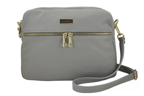 Pojemna torebka skórzana dwukomorowa w kolorze szarym jasnym została wykonana ze skóry naturalnej licowej. W ofercie naszego sklepu znajdziesz wiele modeli funkcjonalnych torebek listonoszek, na długim regulowanym pasku, w szerokiej palecie kolorów, z delikatnymi złotymi lub srebrnymi ozdobami. Wszystkie harmonijnie dopełnią kobiecy look, stanowiąc jego praktyczny dodatek. Klasyczny fason torebki z dużą pojemną zasuwaną kieszenią oraz złote okucia wyróżniają ten model listonoszki, która podkreśli codzienne swobodne stylizacje do pracy, na zakupy, spacer lub krótki wyjazd. Dostępna w najnowszej kolekcji, w szerokiej palecie kolorów, pojemna torebka skórzana dwukomorowa będzie idealna dla osób, którym zależy na stylowych i jednocześnie funkcjonalnych torebkach ze skóry naturalnej. Dzięki klasycznemu i stonowanemu wzornictwu dopasujesz torebkę zarówno do casualowych sukienek lub spodni dżinsowych. Zapoznaj się z najnowszą ofertą torebek skórzanych dostępnych w naszym sklepie - listonoszek, klasycznych lub wygodnych plecaków oraz portfeli. Oferujemy duży wybór produktów galanterii skórzanej Dla Niej i Dla Niego.