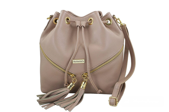 Torebka damska - worek z frędzlami w kolorze różowym pudrowym została wykonana ze skóry licowej. Wygodne i pojemne worki skórzane to doskonała propozycja dla kobiet ceniących modny design oraz funkcjonalność. W naszym sklepie znajdziesz szeroki wybór torebek ze skóry naturalnej, które łączą w sobie elegancję oraz wygodę użytkowania, idealnie sprawdzą się na co dzień - mieszczą to co niezbędne do pracy, na zakupy lub krótki weekendowy wyjazd. Torebka damska - worek z frędzlami wyróżnia się ukośnymi złotymi suwakami oraz zapięciem typu "troczek", co nada Twojej stylizacji niezwykłej lekkości i ciekawego charakteru.