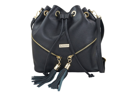 Torebka damska - worek z frędzlami w czarnym kolorze została wykonana ze skóry licowej. Wygodne i pojemne worki skórzane to doskonała propozycja dla kobiet ceniących modny design oraz funkcjonalność. W naszym sklepie znajdziesz szeroki wybór torebek ze skóry naturalnej, które łączą w sobie elegancję oraz wygodę użytkowania, idealnie sprawdzą się na co dzień - mieszczą to co niezbędne do pracy, na zakupy lub krótki weekendowy wyjazd. Torebka damska - worek z frędzlami wyróżnia się ukośnymi złotymi suwakami oraz zapięciem typu "troczek", co nada Twojej stylizacji niezwykłej lekkości i ciekawego charakteru.